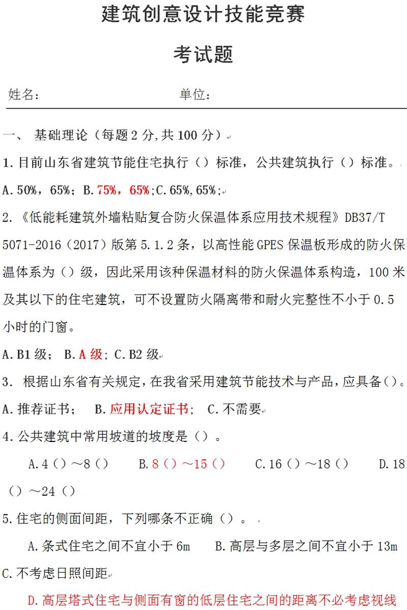 基礎(chǔ)理論:建筑創(chuàng)意設(shè)計技能競賽考試題
